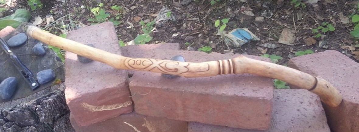 This wand has the image of a simple Goddess carved just above the handle. The knots of the natural branch have been left along its length. The wand has a very natural look, as its ornamentations are few.The tip of the wand is a tumbled, clear, natural citrine crystal from Madagascar. I chose this smooth gemstone for its feminine feel and high magickal energy. The base of the crystal is wrapped in a fine merino wool. This elegant maple wand measures 50.5cm in length